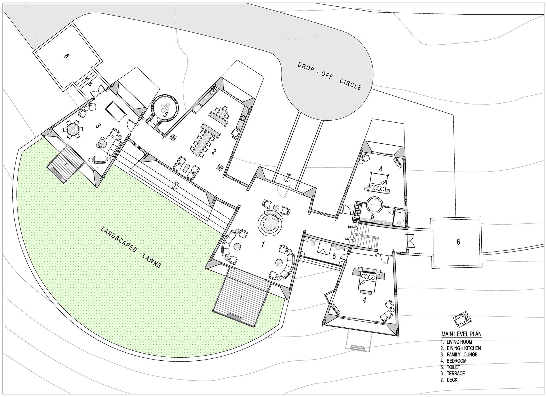 With each space devised as a 'trapezoid' both in plan and section. These cuboids are placed like dice, negotiating contours, whilst also providing unique views of the surrounding lake and mountains.